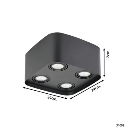 Beschrijving Eglo Plafond Spot Arenzano Staal Zwart 18.8W 1380lm - 830 Warm Wit | Dimbaar - Geschikt voor GU10