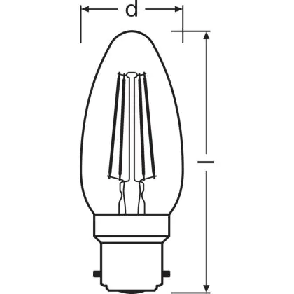Beschrijving Ledvance Classic Performance LED Lamp B22d Kaars Filament Helder 4W 470lm - 827 Zeer Warm Wit | Vervangt 40W