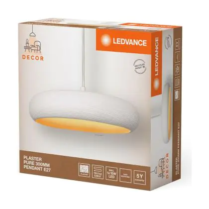 Beschrijving Ledvance Decor Gips/Staal Pure Pendelarmatuur 300 Wit | Geschikt voor E27