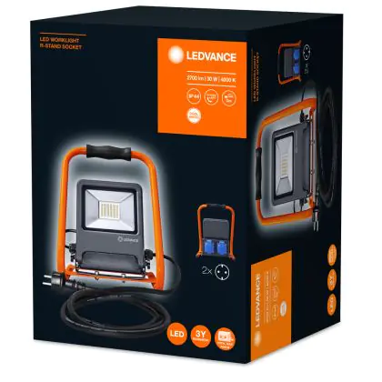 Beschrijving Ledvance LED Breedstraler Bouwlamp Donker Grijs 30W 2700lm 110D - 840 Koel Wit | IP54 - 2 Power Outlets - Symmetrisch