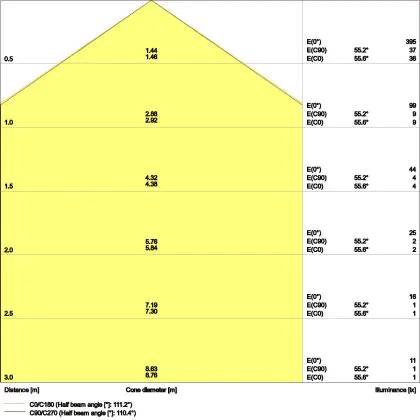 De lichtopbrengst (Lumen), geeft weer hoe krachtig het uitgestraalde licht is. Dit is belangrijk om te weten om de juiste sfeer te creëren. 0 tot 400 Lumen is bij uitstek geschikt voor accent- of sfeerverlichting. Een hoger aantal Lumen is, afhankelijk van de grootte van de ruimte, beter geschikt als ondersteunende- of basisverlichting. Heb je plafonds hoger dan 4 meter, dan is een lichtopbrengst van minimaal 8000lm aan te raden indien heldere verliching gewenst is (vb. in werkomgevingen).