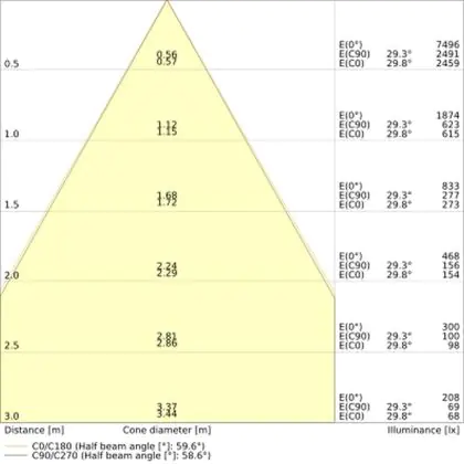 De gradenbundel geeft informatie over hoe breed het licht wordt uitgestraald. Dit zit tussen de 0 en 360 graden (D). Hoe kleiner de hoek, hoe specifieker de lichtbundel is. Over het algemeen is een smalle gradenbundel perfect voor sfeer- of accentverlichting, terwijl een brede gradenbundel ideaal is om grote oppervlaktes te verlichten.