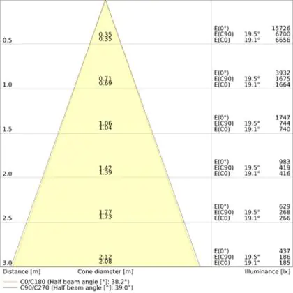 De gradenbundel geeft informatie over hoe breed het licht wordt uitgestraald. Dit zit tussen de 0 en 360 graden (D). Hoe kleiner de hoek, hoe specifieker de lichtbundel is. Over het algemeen is een smalle gradenbundel perfect voor sfeer- of accentverlichting, terwijl een brede gradenbundel ideaal is om grote oppervlaktes te verlichten.