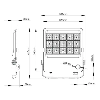 De waterdichte behuizing van deze lichtbron is niet de enige reden dat deze LED breedstraler buiten perfect te gebruiken is. Dit heeft ook te maken met de lichtverdeling van deze lichtbron. Zo heb je smalle en brede gradenbundels met een assymmetrische of symmetrische lichtverdeling, die voor zowel bedrijven als woningen gebruikt kunnen worden. Hierover kun je meer lezen in deze blog. Deze LED floodlight heeft een 60° stralingshoek en straalt een 3000K - 4000K - 6500K CCT licht uit.