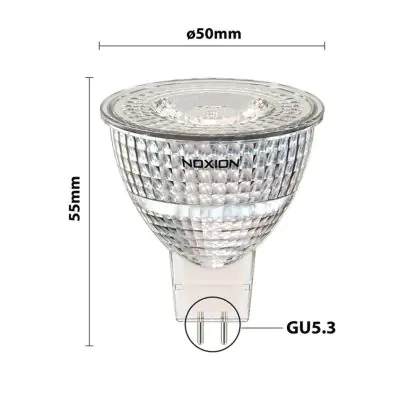 | Fabrikantnaam | Noxion LEDspot 12V GU5.3 6.1‐50W 830 36D 621lm ND | |