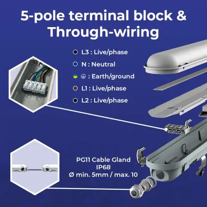 Beschrijving Noxion LED Waterdichte Montagebalk Poseidon V3.0 35-65W 4550-9100lm - 830-865 CCT | 150cm - Doorvoerbedrading (5x2.5mm2)