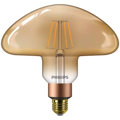 Beschrijving Philips Classic LED E27 Mushroom 200mm Filament Goud 5.5W 470lm - 818 Zeer Warm Wit | Dimbaar - Vervangt 40W
