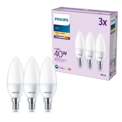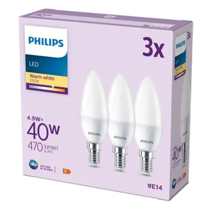 Beschrijving Voordeelpak 3x Philips Lamp LED E14 Kaars Mat 5W 470lm - 827 Zeer Warm Wit