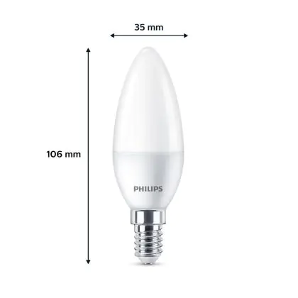 Beschrijving Voordeelpak 6x Philips Lamp LED E14 Kaars Mat 5W 470lm - 827 Zeer Warm Wit